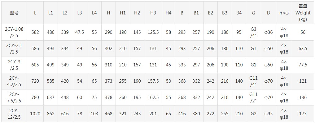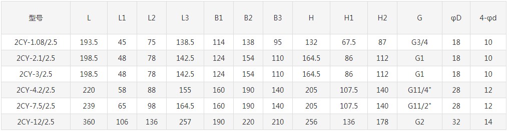 2CY系列齒輪泵外型、安裝尺寸及重量